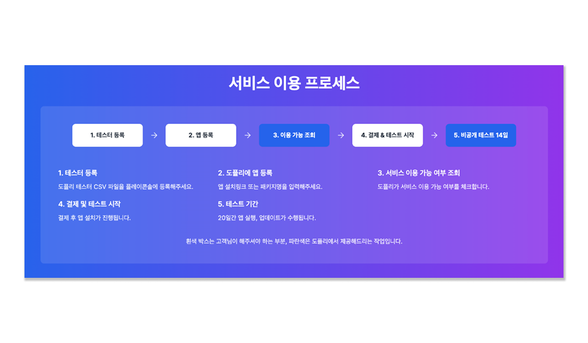 - 콘솔에서 발급되는 "테스터 참여 링크"를 도플리(Doply)에 등록